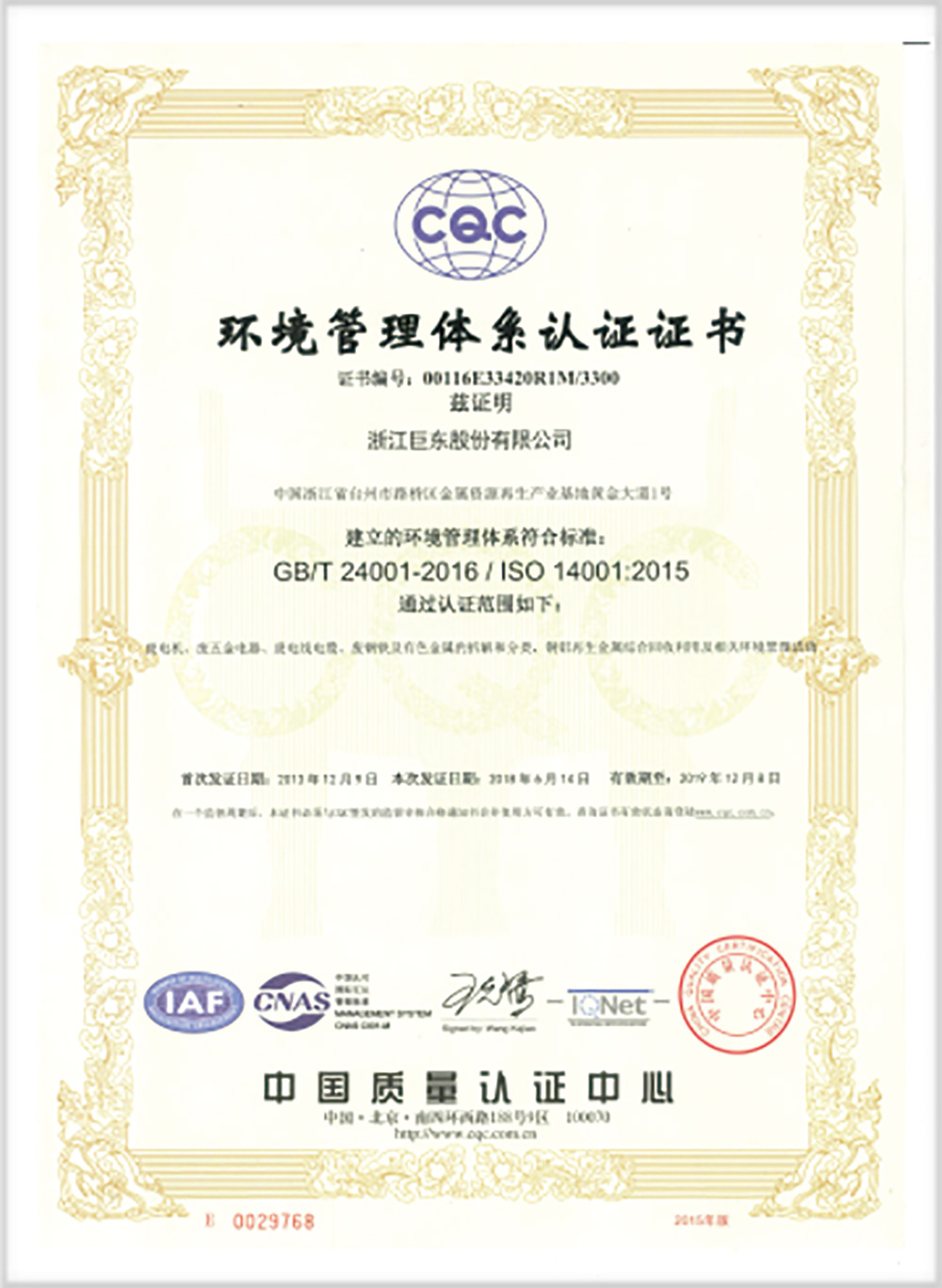 2018年6月にISO 14001認証を取得する。