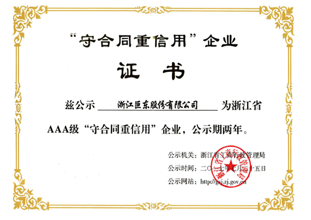 2017年浙江省AAA級守契約重信用企業