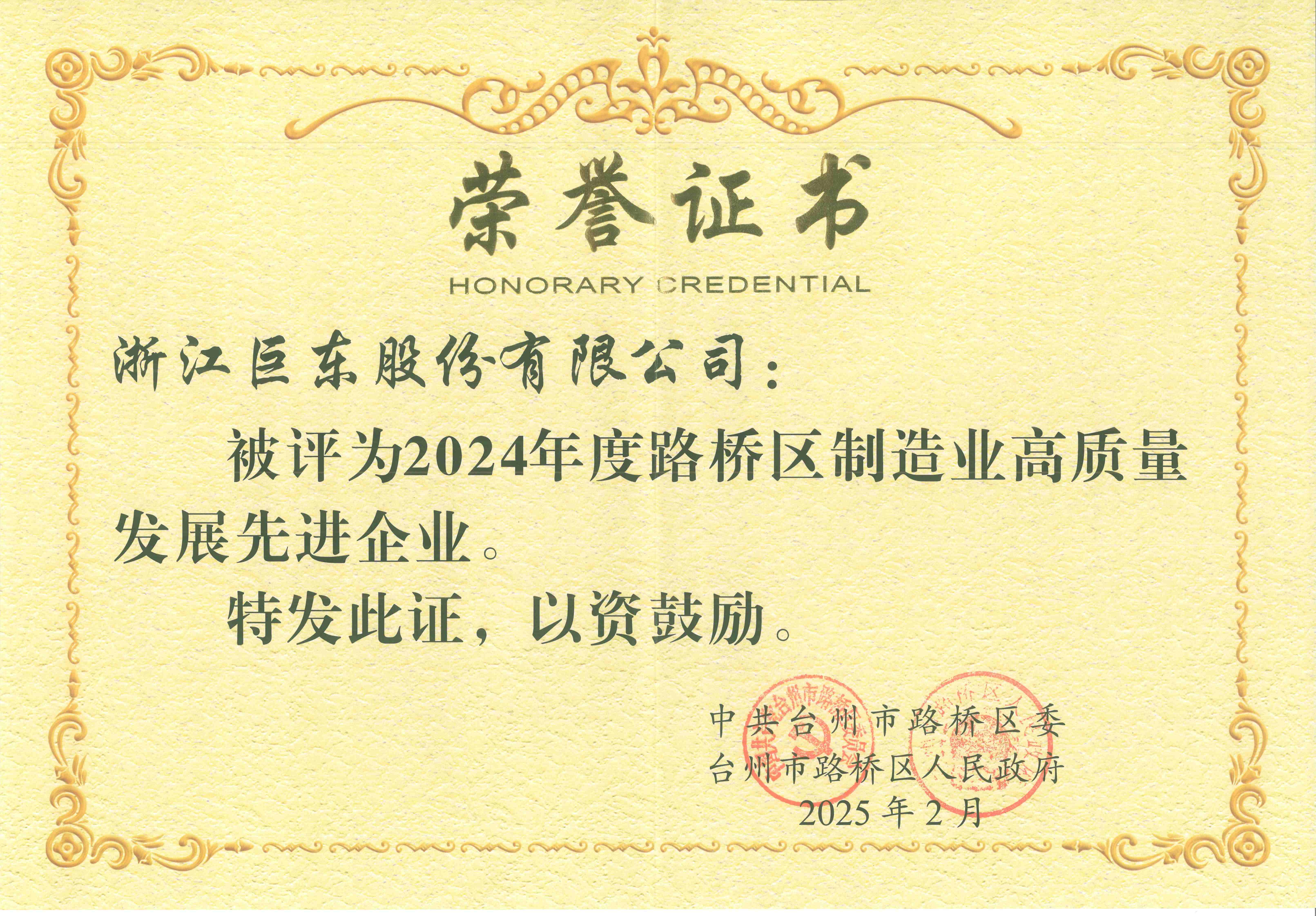 2024年度路橋區制造業高質量發展先進企業